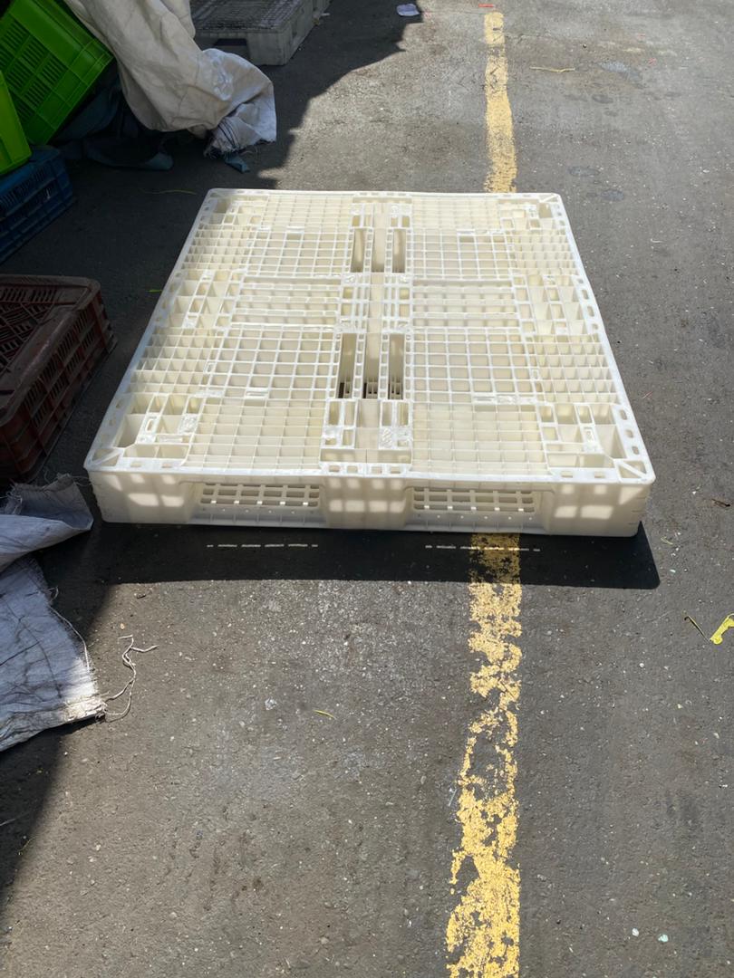 خرید و عرضه مستقیم پالتهای پلاستیکی با کیفیت صنعتی در سایز 110×130 سانتیمتر - طرح مشبک پتروشیمی دست دوم در حد نو